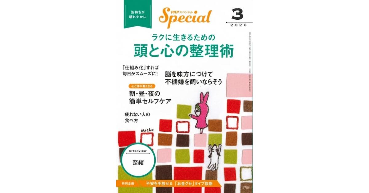 PHPの月刊女性誌「PHPスペシャル」。心に寄り添う&役立つ〈読むサプリ〉として、人間関係やメンタルケアなどを中心に、読み物やノウハウが満載です。